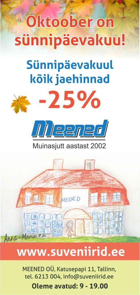 Lisainfo: info@suveniirid.ee; Tel. +372 6213 004